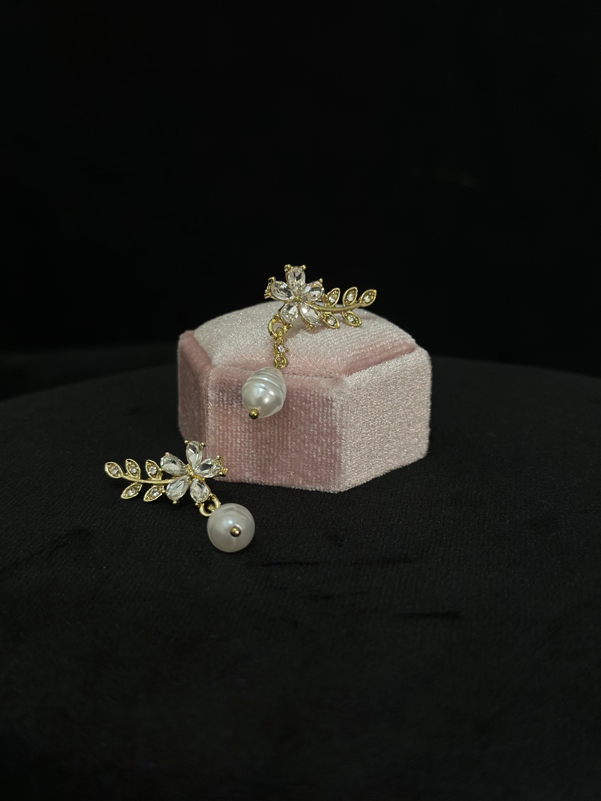 Un design elegante e luminoso: il ramo dorato con zirconia cubica scintillante abbraccia la delicatezza della perla sintetica, creando un equilibrio perfetto tra raffinatezza e modernità .