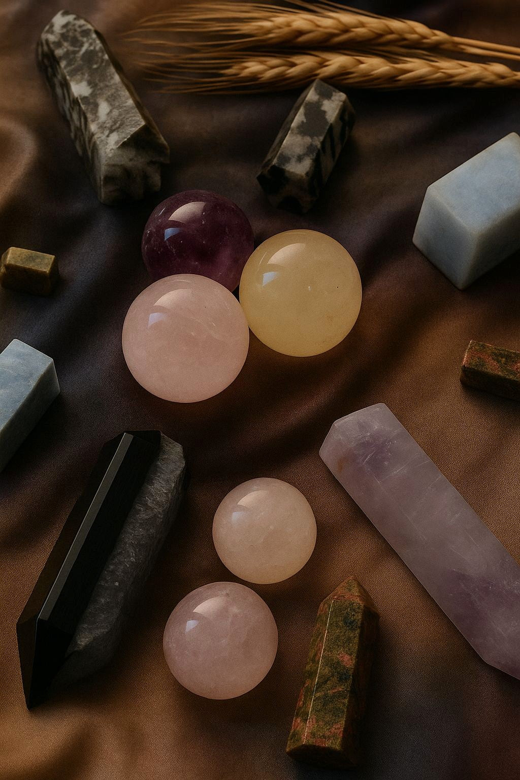 La nostra collezione di torri e sfere in pietre naturali, simboli di...