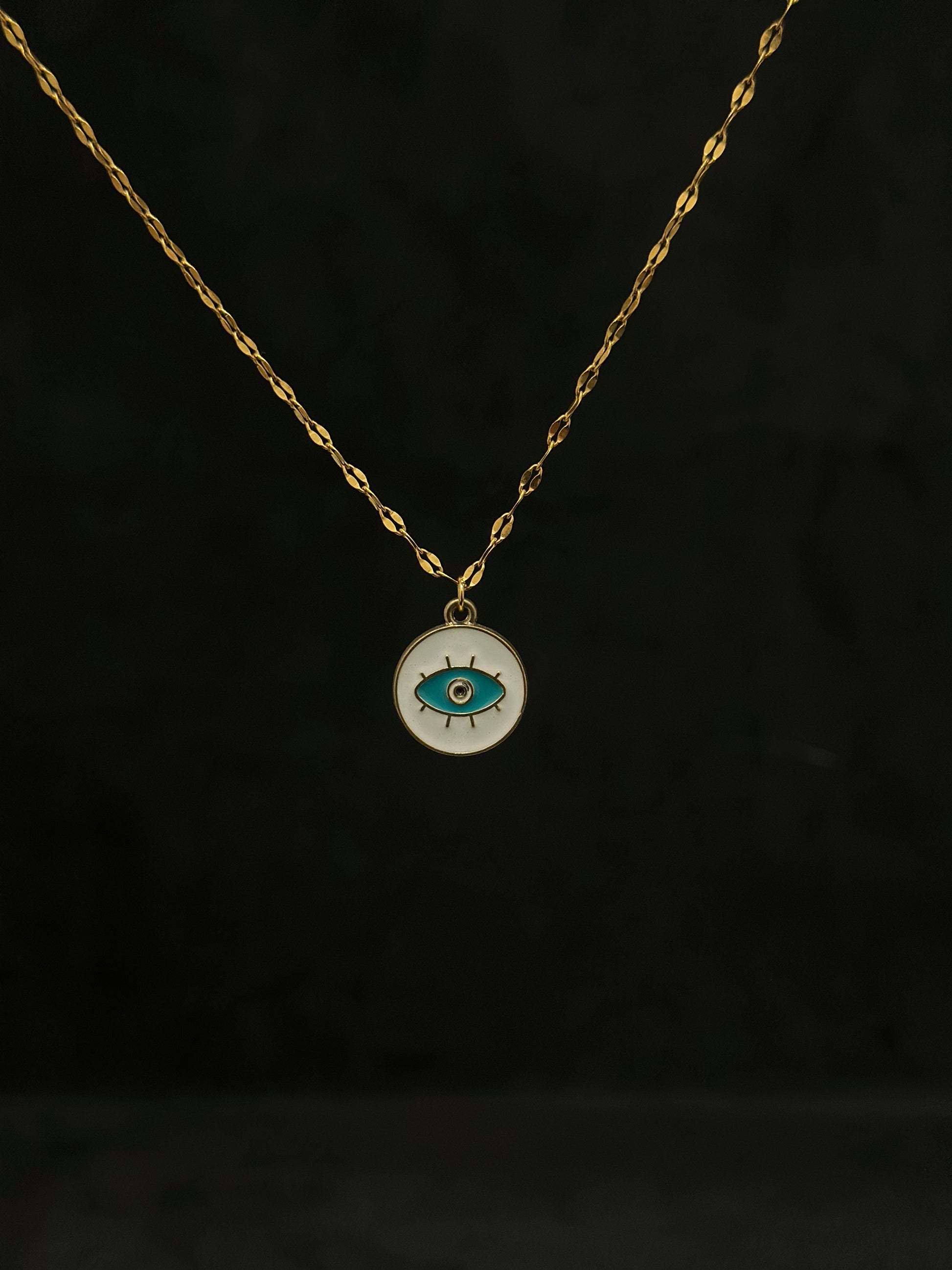 Collana in acciaio con ciondolo raffigurante l'occhio di Nazar, simbolo di protezione contro il malocchio. Un amuleto dal fascino tradizionale e contemporaneo, perfetto per un tocco di stile dal significato potente