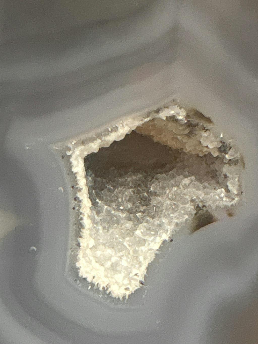 All’interno, la drusa di quarzo microcristallino amplifica la sensazione di quiete e rende questo geode un alleato ideale per gli spazi in cui vivi ogni giorno.